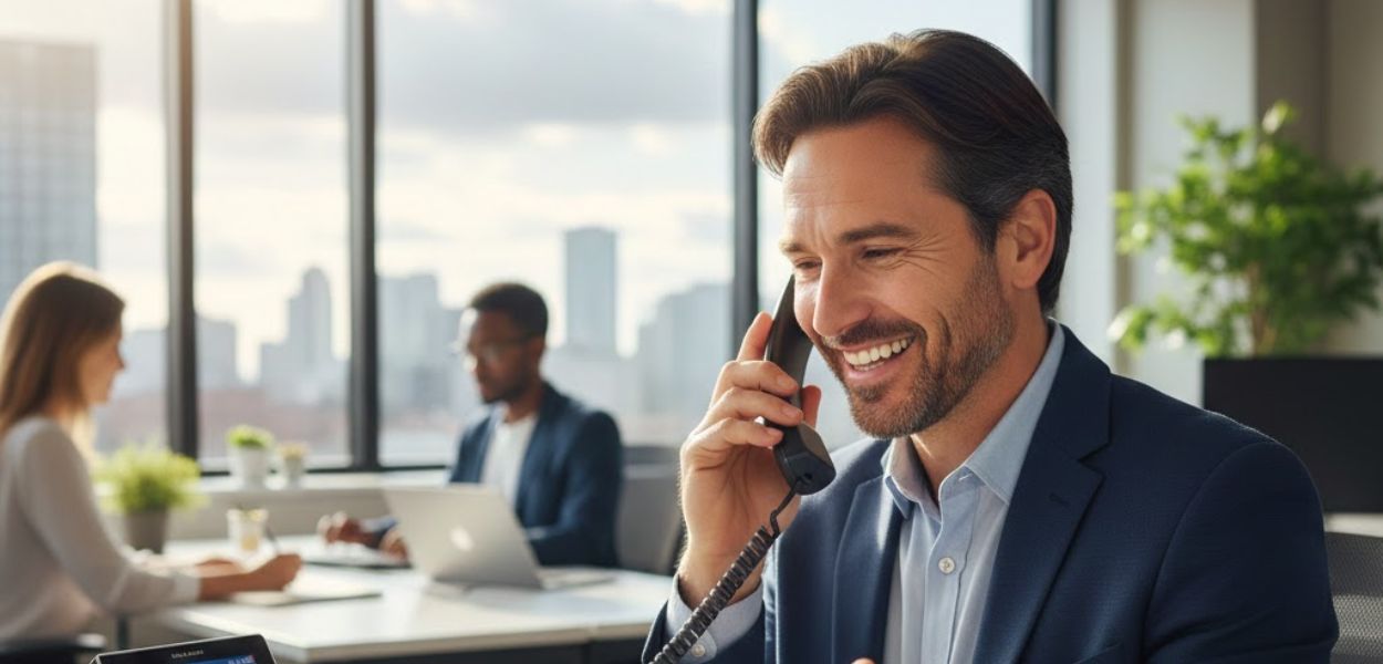 Your team member at their desk presses a button or clicks an on-screen phone interface to call a customer. The call routes through the internet to the provider's cloud infrastructure, then to the customer's phone. Because everything is software-based, features like call recording, call transfer, or voicemail-to-email happen automatically without anyone having to press special codes or buttons.